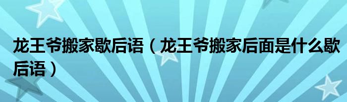 大家好,小生来为大家讲解下。龙王爷搬家歇后语,龙王爷搬家后面是什么歇后语很多人还不知道,现在让我们一起来看看吧!