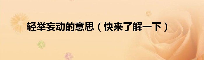 大家好,伊人来为大家解答以上问题。轻举妄动的意思,快来了解一下很多人还不知道,现在让我们一起来看看吧!