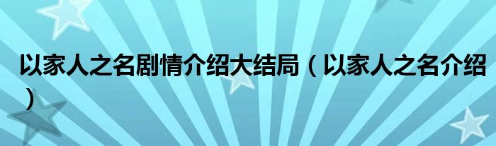 大家好,伊人来为大家解答以上问题。以家人之名剧情介绍大结局,以家人之名介绍很多人还不知道,现在让我们一起来看看吧!