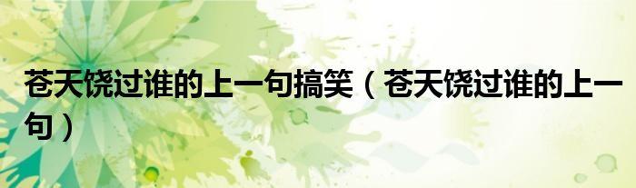 大家好,小生来为大家讲解下。苍天饶过谁的上一句搞笑,苍天饶过谁的上一句很多人还不知道,现在让我们一起来看看吧!