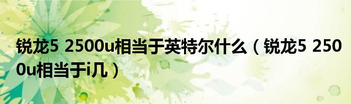 大家好,小生来为大家讲解下。锐龙5 2500u相当于英特尔什么,锐龙5 2500u相当于i几很多人还不知道,现在让我们一起来看看吧!