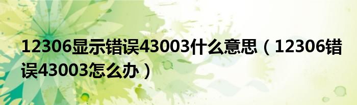 大家好,小生来为大家讲解下。12306显示错误43003什么意思,12306错误43003怎么办很多人还不知道,现在让我们一起来看看吧!