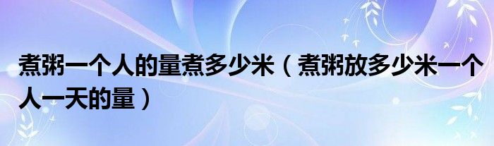大家好,小生来为大家讲解下。煮粥一个人的量煮多少米,煮粥放多少米一个人一天的量很多人还不知道,现在让我们一起来看看吧!