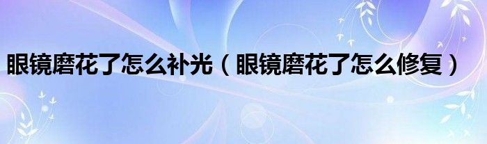 大家好,小生来为大家讲解下。眼镜磨花了怎么补光,眼镜磨花了怎么修复很多人还不知道,现在让我们一起来看看吧!
