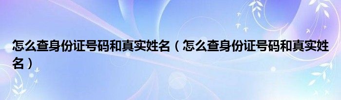 大家好,小生来为大家讲解下。怎么查身份证号码和真实姓名,怎么查身份证号码和真实姓名很多人还不知道,现在让我们一起来看看吧!