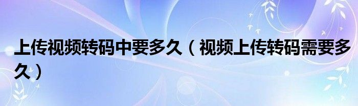 大家好,小生来为大家讲解下。上传视频转码中要多久,视频上传转码需要多久很多人还不知道,现在让我们一起来看看吧!