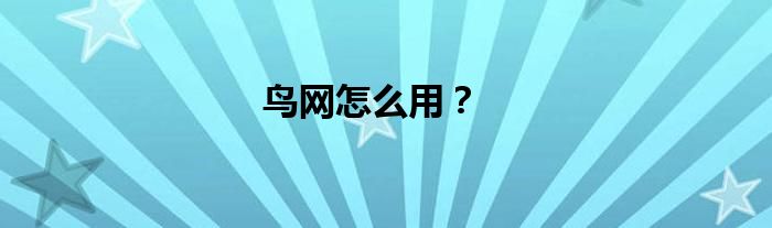 大家好,小生来为大家讲解下。鸟网怎么用?很多人还不知道,现在让我们一起来看看吧!