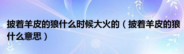 大家好,小生来为大家讲解下。披着羊皮的狼什么时候大火的,披着羊皮的狼什么意思很多人还不知道,现在让我们一起来看看吧!