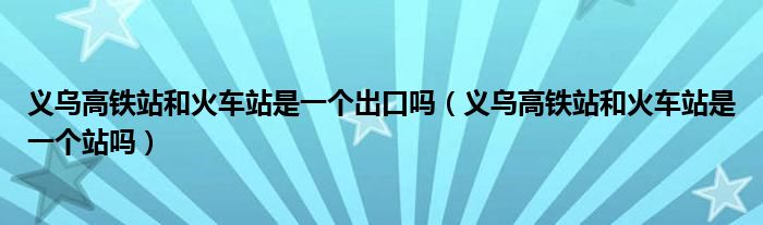 大家好,小生来为大家讲解下。义乌高铁站和火车站是一个出口吗,义乌高铁站和火车站是一个站吗很多人还不知道,现在让我们一起来看看吧!