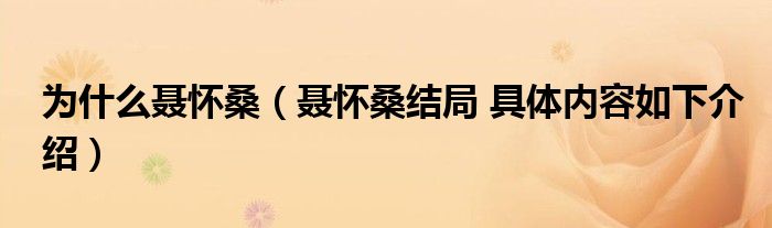 大家好,小生来为大家讲解下。为什么聂怀桑,聂怀桑结局 具体内容如下介绍很多人还不知道,现在让我们一起来看看吧!