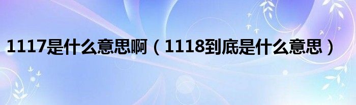 大家好,小生来为大家讲解下。1117是什么意思啊,1118到底是什么意思很多人还不知道,现在让我们一起来看看吧!