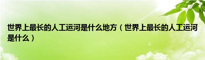 大家好,小生来为大家讲解下。世界上最长的人工运河是什么地方,世界上最长的人工运河是什么很多人还不知道,现在让我们一起来看看吧!