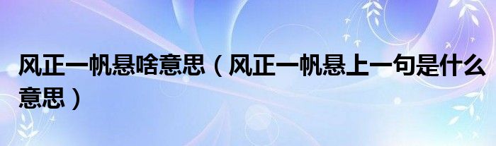 大家好,小生来为大家讲解下。风正一帆悬啥意思,风正一帆悬上一句是什么意思很多人还不知道,现在让我们一起来看看吧!