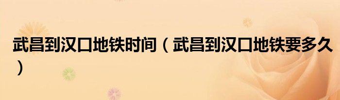 大家好,小生来为大家讲解下。武昌到汉口地铁时间,武昌到汉口地铁要多久很多人还不知道,现在让我们一起来看看吧!