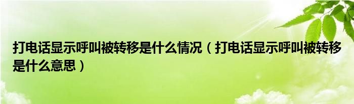 大家好,小生来为大家讲解下。打电话显示呼叫被转移是什么情况,打电话显示呼叫被转移是什么意思很多人还不知道,现在让我们一起来看看吧!