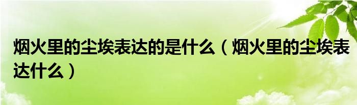 大家好,小生来为大家讲解下。烟火里的尘埃表达的是什么,烟火里的尘埃表达什么很多人还不知道,现在让我们一起来看看吧!