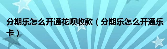 大家好,小生来为大家讲解下。分期乐怎么开通花呗收款,分期乐怎么开通乐卡很多人还不知道,现在让我们一起来看看吧!