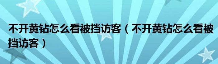 大家好,小生来为大家讲解下。不开黄钻怎么看被挡访客,不开黄钻怎么看被挡访客很多人还不知道,现在让我们一起来看看吧!