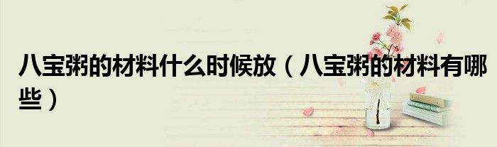 大家好,小生来为大家讲解下。八宝粥的材料什么时候放,八宝粥的材料有哪些很多人还不知道,现在让我们一起来看看吧!