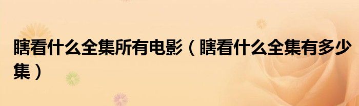 大家好,小生来为大家讲解下。瞎看什么全集所有电影,瞎看什么全集有多少集很多人还不知道,现在让我们一起来看看吧!