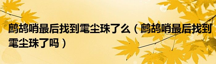 大家好,小生来为大家讲解下。鹧鸪哨最后找到雮尘珠了么,鹧鸪哨最后找到雮尘珠了吗很多人还不知道,现在让我们一起来看看吧!