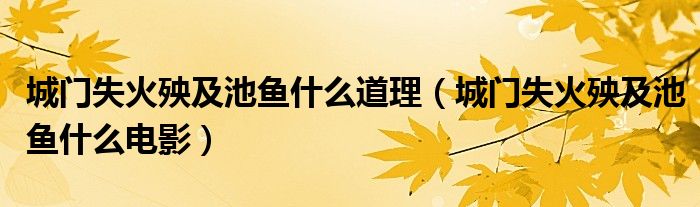 大家好,小生来为大家讲解下。城门失火殃及池鱼什么道理,城门失火殃及池鱼什么电影很多人还不知道,现在让我们一起来看看吧!