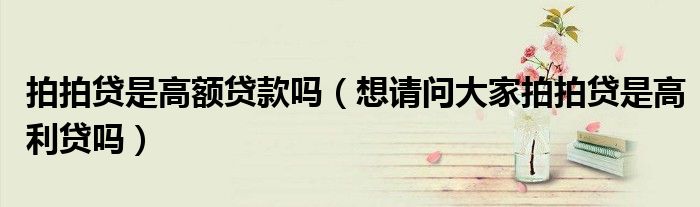 大家好,小生来为大家讲解下。拍拍贷是高额贷款吗,想请问大家拍拍贷是高利贷吗很多人还不知道,现在让我们一起来看看吧!