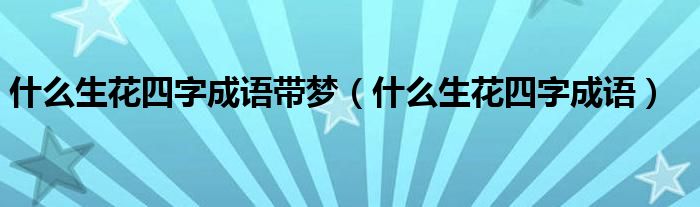 大家好,小生来为大家讲解下。什么生花四字成语带梦,什么生花四字成语很多人还不知道,现在让我们一起来看看吧!