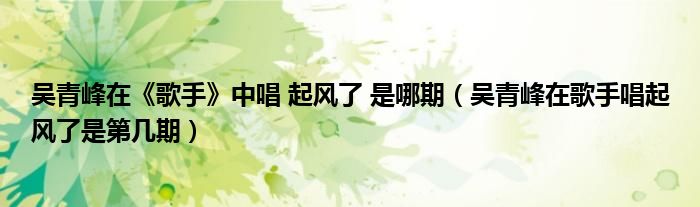 大家好,小生来为大家讲解下。吴青峰在《歌手》中唱 起风了 是哪期,吴青峰在歌手唱起风了是第几期很多人还不知道,现在让我们一起来看看吧!