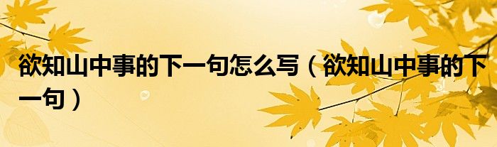 大家好,小生来为大家讲解下。欲知山中事的下一句怎么写,欲知山中事的下一句很多人还不知道,现在让我们一起来看看吧!