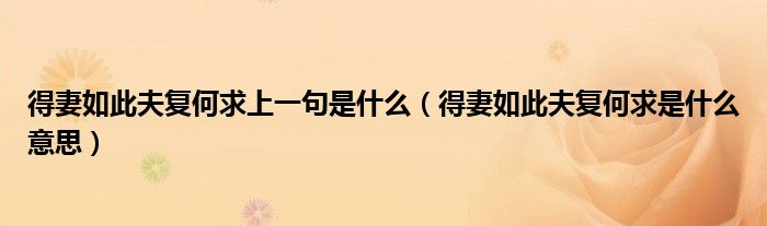 大家好,小生来为大家讲解下。得妻如此夫复何求上一句是什么,得妻如此夫复何求是什么意思很多人还不知道,现在让我们一起来看看吧!