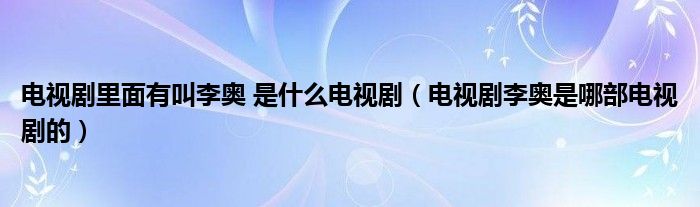 大家好,小生来为大家讲解下。电视剧里面有叫李奥 是什么电视剧,电视剧李奥是哪部电视剧的很多人还不知道,现在让我们一起来看看吧!