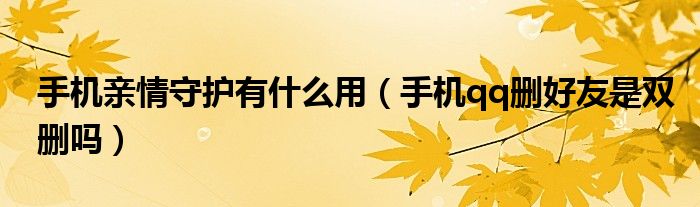 大家好,小生来为大家讲解下。手机亲情守护有什么用,手机qq删好友是双删吗很多人还不知道,现在让我们一起来看看吧!