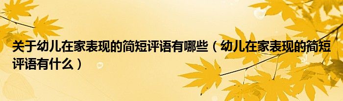 大家好,伊人来为大家解答以上问题。关于幼儿在家表现的简短评语有哪些,幼儿在家表现的简短评语有什么很多人还不知道,现在让我们一起来看看吧!
