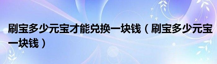大家好,小生来为大家讲解下。刷宝多少元宝才能兑换一块钱,刷宝多少元宝一块钱很多人还不知道,现在让我们一起来看看吧!