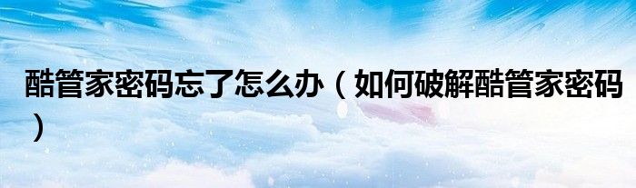 大家好,小生来为大家讲解下。酷管家密码忘了怎么办,如何破解酷管家密码很多人还不知道,现在让我们一起来看看吧!
