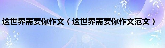 这个世界需要你,无论你是谁;这个世界需要你,无论你在哪里;这个世界需要你,无论你是贫穷还是富有。