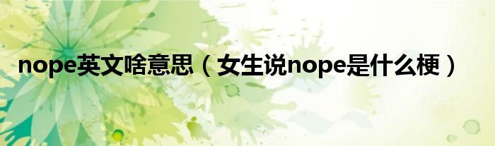 大家好,小生来为大家讲解下。nope英文啥意思,女生说nope是什么梗很多人还不知道,现在让我们一起来看看吧!