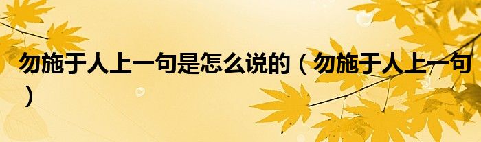 大家好,小生来为大家讲解下。勿施于人上一句是怎么说的,勿施于人上一句很多人还不知道,现在让我们一起来看看吧!