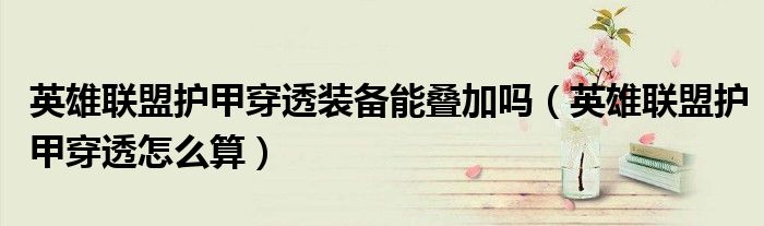 大家好,小生来为大家讲解下。英雄联盟护甲穿透装备能叠加吗,英雄联盟护甲穿透怎么算很多人还不知道,现在让我们一起来看看吧!