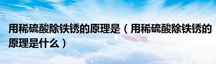 大家好,小生来为大家讲解下。用稀硫酸除铁锈的原理是,用稀硫酸除铁锈的原理是什么很多人还不知道,现在让我们一起来看看吧!