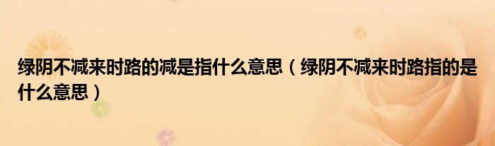 大家好,小生来为大家讲解下。绿阴不减来时路的减是指什么意思,绿阴不减来时路指的是什么意思很多人还不知道,现在让我们一起来看看吧!