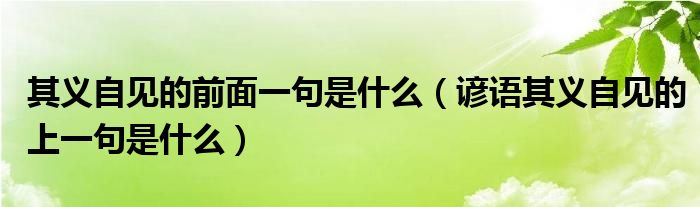 大家好,小生来为大家讲解下。其义自见的前面一句是什么,谚语其义自见的上一句是什么很多人还不知道,现在让我们一起来看看吧!