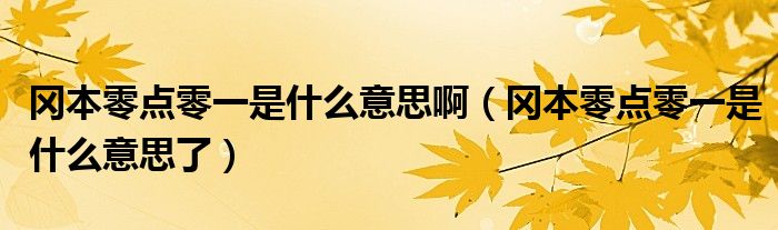 大家好,小生来为大家讲解下。冈本零点零一是什么意思啊,冈本零点零一是什么意思了很多人还不知道,现在让我们一起来看看吧!