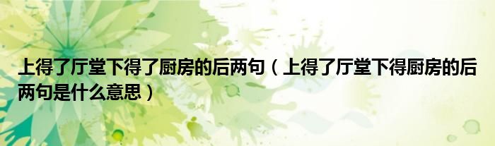 大家好,小生来为大家讲解下。上得了厅堂下得了厨房的后两句,上得了厅堂下得厨房的后两句是什么意思很多人还不知道,现在让我们一起来看看吧!