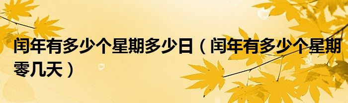 大家好,小生来为大家讲解下。闰年有多少个星期多少日,闰年有多少个星期零几天很多人还不知道,现在让我们一起来看看吧!