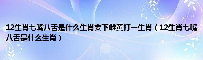 大家好,小生来为大家讲解下。12生肖七嘴八舌是什么生肖妄下雌黄打一生肖,12生肖七嘴八舌是什么生肖很多人还不知道,现在让我们一起来看看吧!