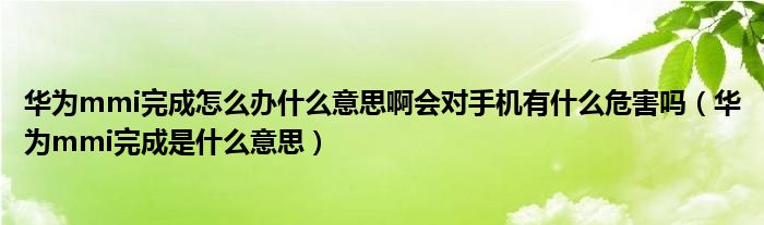 大家好,小生来为大家讲解下。华为mmi完成怎么办什么意思啊会对手机有什么危害吗,华为mmi完成是什么意思很多人还不知道,现在让我们一起来看看吧!