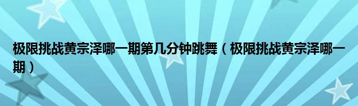 大家好,小生来为大家讲解下。极限挑战黄宗泽哪一期第几分钟跳舞,极限挑战黄宗泽哪一期很多人还不知道,现在让我们一起来看看吧!