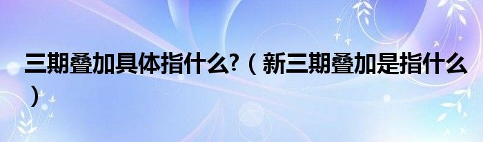 大家好,小生来为大家讲解下。三期叠加具体指什么?,新三期叠加是指什么很多人还不知道,现在让我们一起来看看吧!